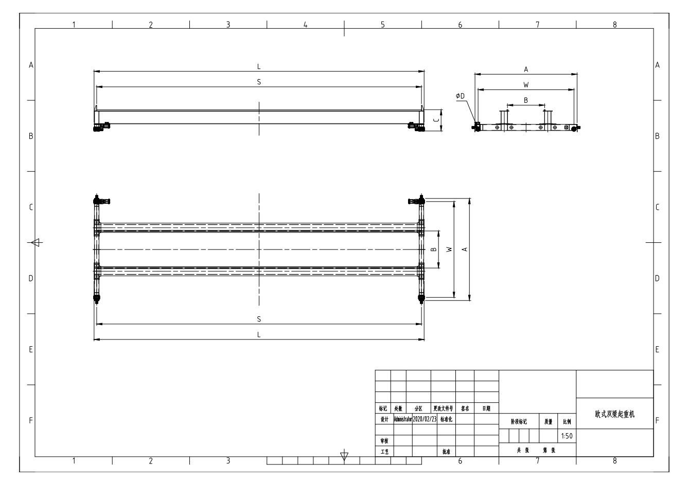 1、主梁:整版拼接H型主梁,整板焊接,自重輕,優(yōu)化設計,高度矮,結構緊湊,強度高,運行平穩(wěn)。