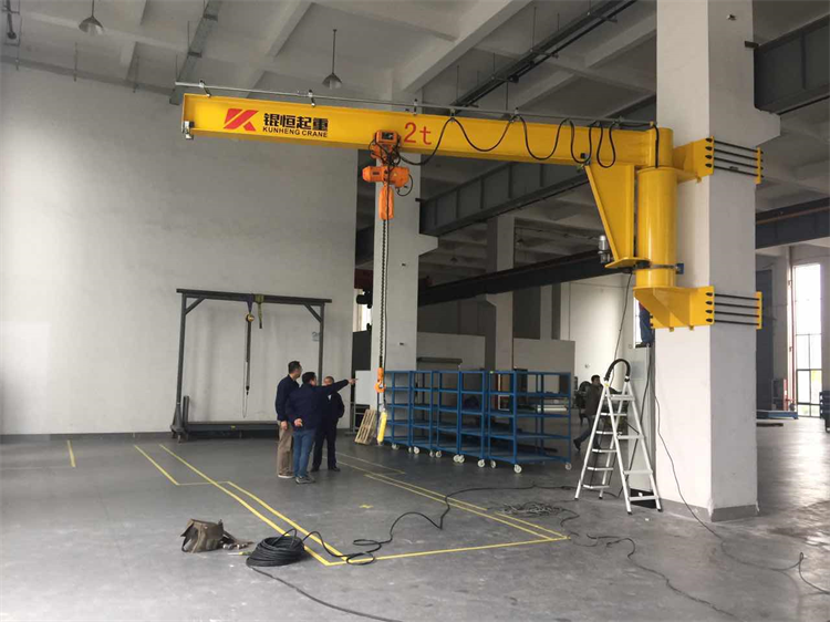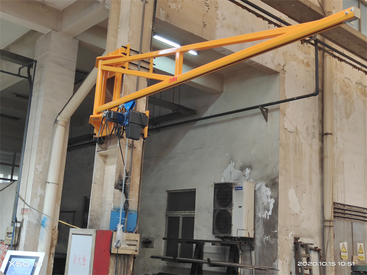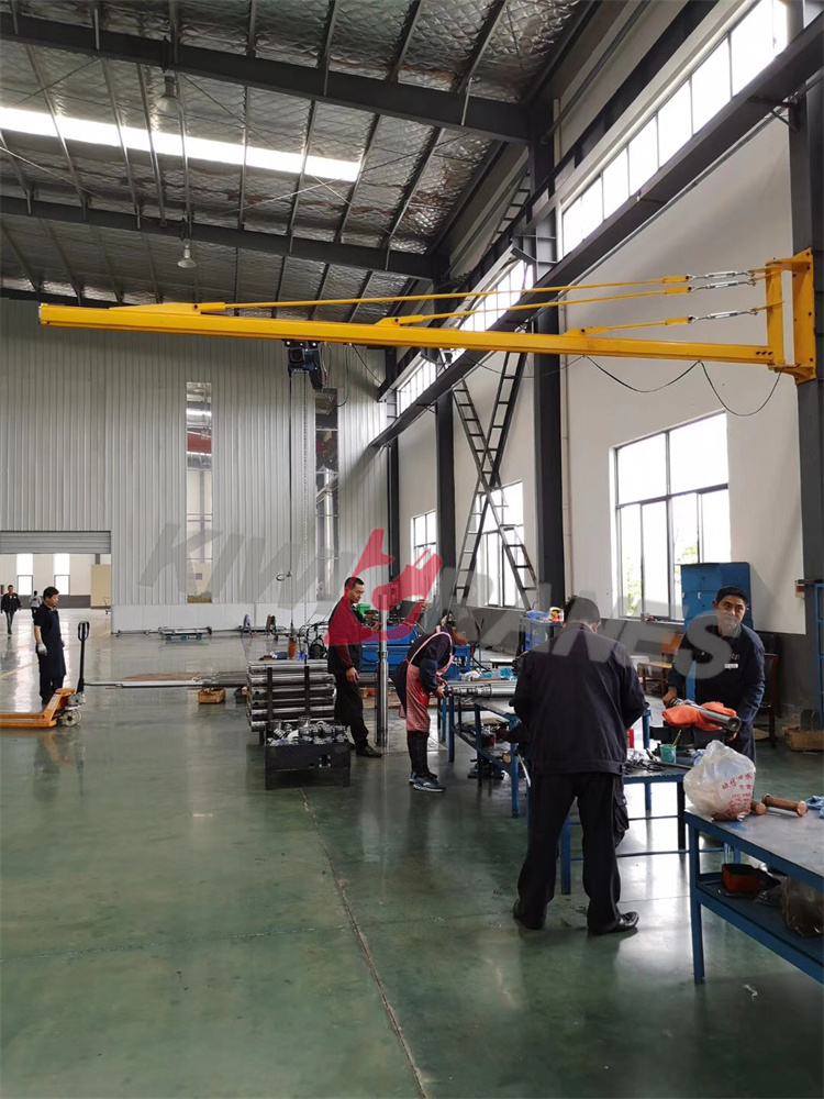 愷文生產(chǎn)的墻壁式懸臂吊工作用途和優(yōu)勢(shì)特點(diǎn)和立柱式懸臂吊一致,采用低凈空懸臂允許有較大的起升高度,該設(shè)備可用在有鋼筋混凝土墻或者鋼結(jié)構(gòu)立柱的場(chǎng)合,最佳利用空間,不占用地面空間,起升高度可以根據(jù)要求起吊的高度任意決定。懸臂吊可以非常容易的用對(duì)穿螺栓或抱箍固定。