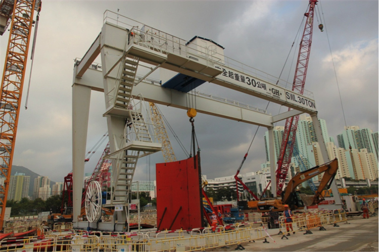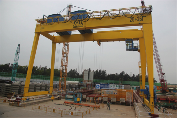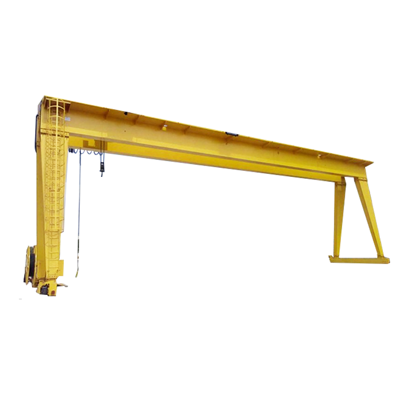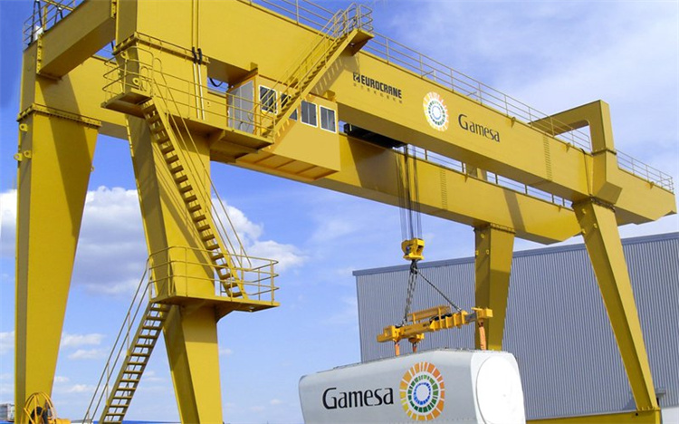 門式起重機(又稱龍門起重機)是橋架通過兩側(cè)支腿支撐在地面軌道上的橋架型起重機。在結(jié)構(gòu)上由門架、大車運行機構(gòu)、起重小車和控制電氣部分等組成。有的門式起重機只在一側(cè)有支腿,另一側(cè)支撐在廠房或棧橋上運行,稱作半門式起重機。門式起重機的門架上部橋架(含主梁和端梁)、支腿、下橫梁等部分構(gòu)成。為了擴大起重機作業(yè)范圍,主梁可以向一側(cè)或兩側(cè)伸出支腿以外,形成懸臂。也可采用帶臂架的起重小車,通過臂架的俯仰和旋轉(zhuǎn)擴大起重機作業(yè)范圍。