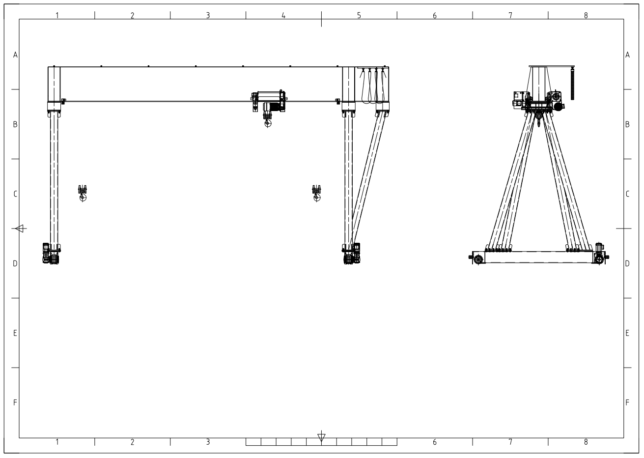 在結(jié)構(gòu)上由門架、大車運(yùn)行機(jī)構(gòu)、起重小車和控制電氣部分等組成