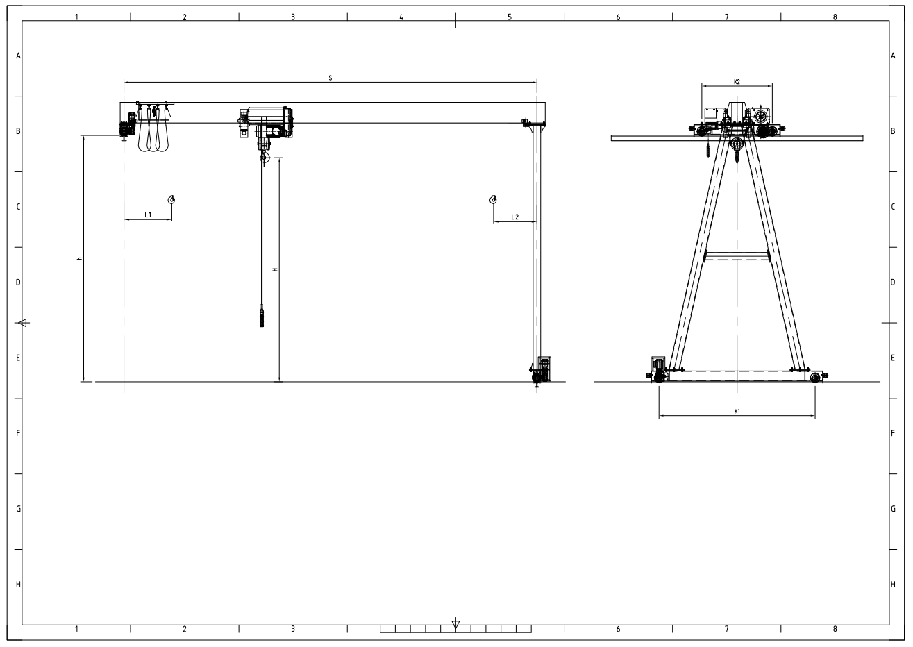 在結(jié)構(gòu)上由門架、大車運(yùn)行機(jī)構(gòu)、起重小車和控制電氣部分等組成